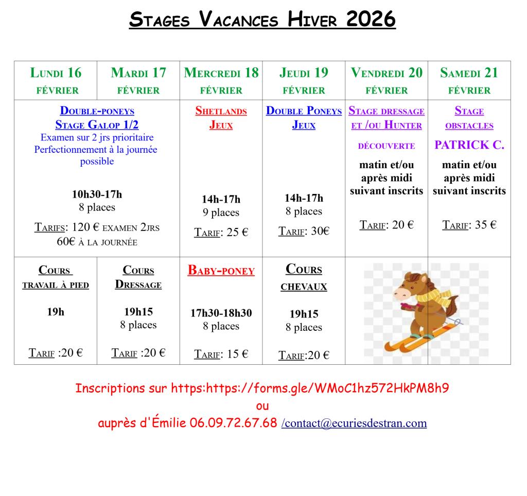 Profite de t’inscrire aux stages galop si tu peux pendant ces vacances car il n’y aura pas la place pour tout le monde aux vacances de printemps !